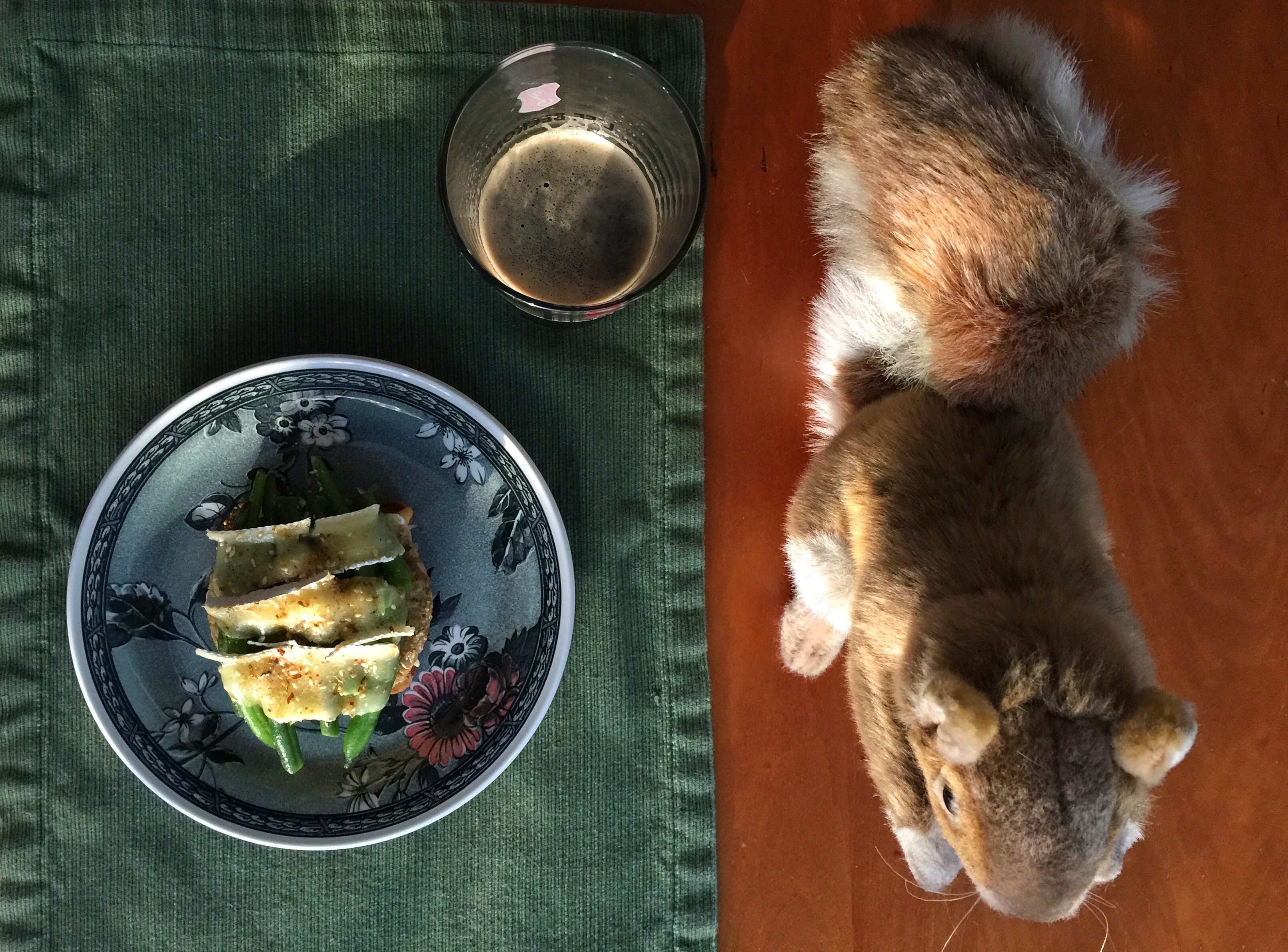 Tonight’s dinner was really good. And I added a nice furry squirrel in the shot for fun. It is a veggie burger variation. Gluten free bread, spicy mayo, spicy sweet pickles, sour kraut, veggie burger, green beans, brie, cumin and spices. Yum. Oh yes, with a porter.