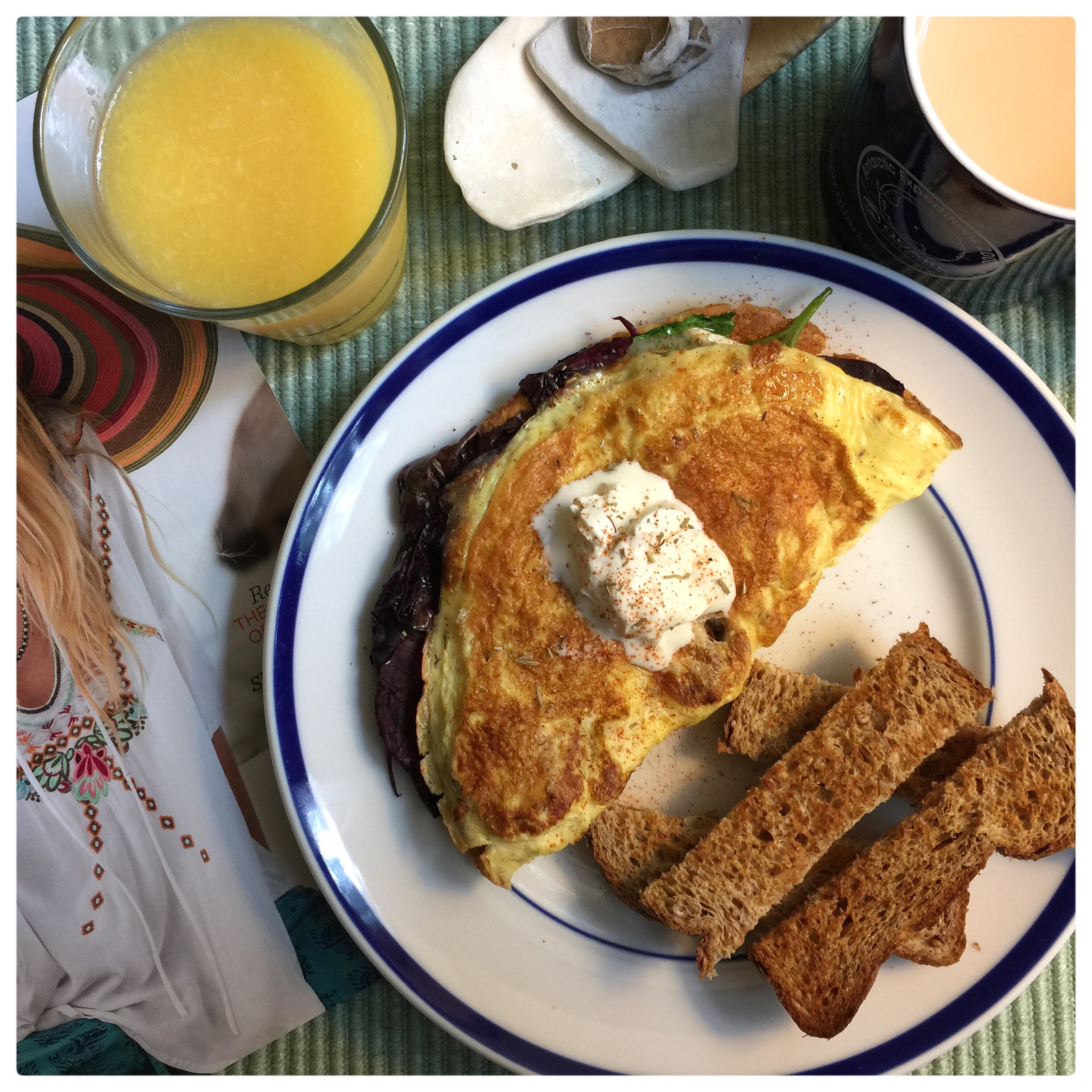 It was a ridiculously long week. And Saturday morning was no different. I had to have my car in early to have a headlight bulb replaced. Mine aren’t the easy kind. You actually have to really take things apart. Then somewhere soon after some Father’s Day shopping needed to happen. In between, I had just enough time for a rushed but delicious breakfast. Usually, Saturday breakfast is a time for restoration but I had to do that on a short schedule this weekend. All things worked out well…but I was really hungry by the time I got done with the car. I knew I had some creme fresh, heirloom spinach, bella mushrooms and brie. Threw together a folded frittata and some toast. It was so lovely. As I finished the last bite the doorbell rang. It was mom. Let the shopping begin.