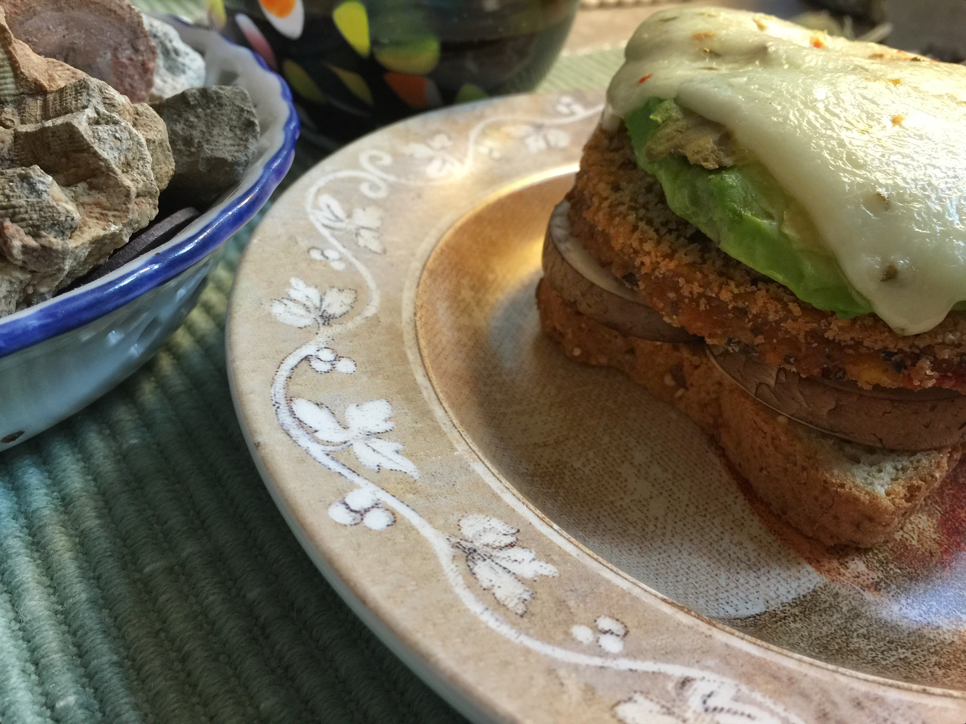 Another good shot of stacking ingredients. This one is mushroom, veggie burger, butter lettuce and jalapeno yogurt cheese.